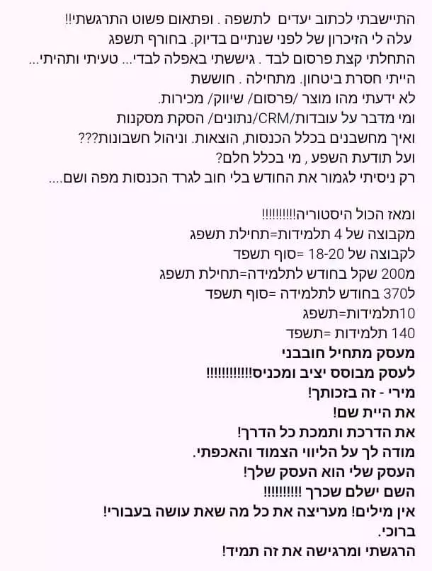 בשנים האחרונות ליוויתי בעלי ובעלות עסקים בתהליכים ממוקדים,