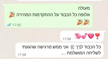 אני כאן בשבילך. מענה אישי לכל שאלה בוואטסאפ או במייל עד 48 שעות.