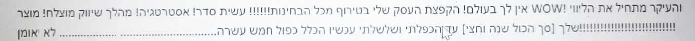 בסיום השאלון תקבלי אינדיקציה מדויקת על מצב העסק ומה כדאי לשפר כדי לגדול.